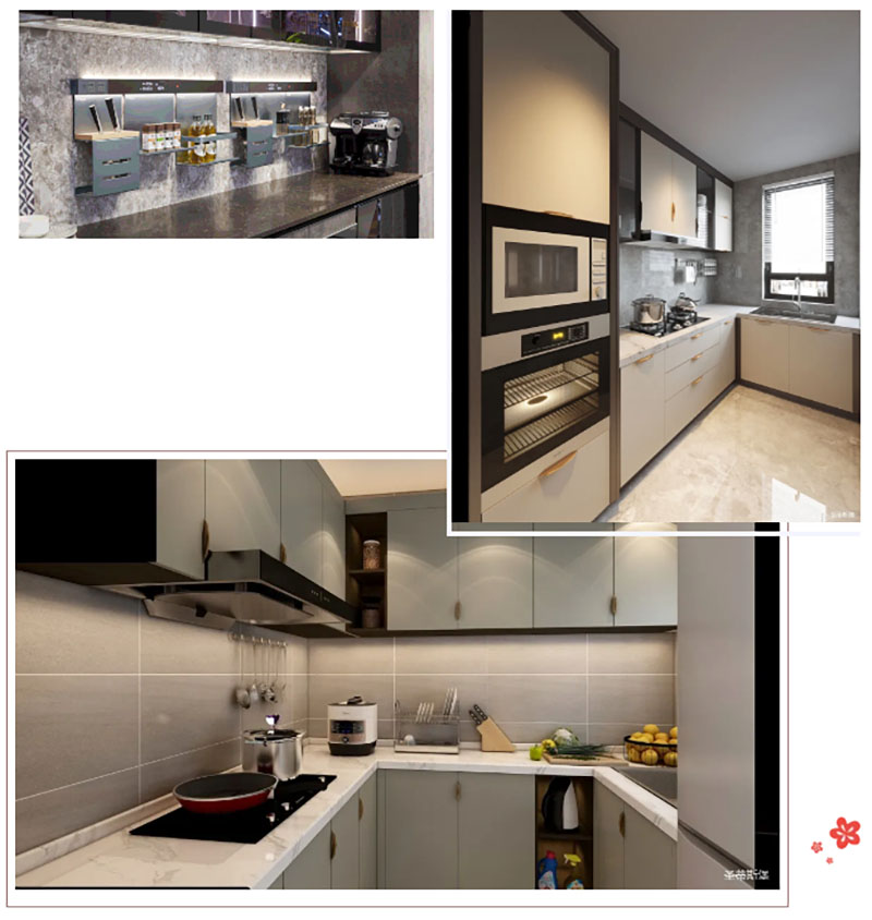 光有頂部主光源是不夠的,因為身體和櫥柜的遮擋會(huì )造成操作區陰影。這時(shí)候就需要安裝水槽、櫥柜區的光源作為補充輔助照明,使光線(xiàn)集中照明,讓使用區域更清晰。