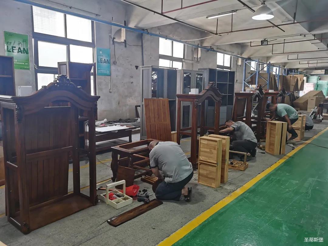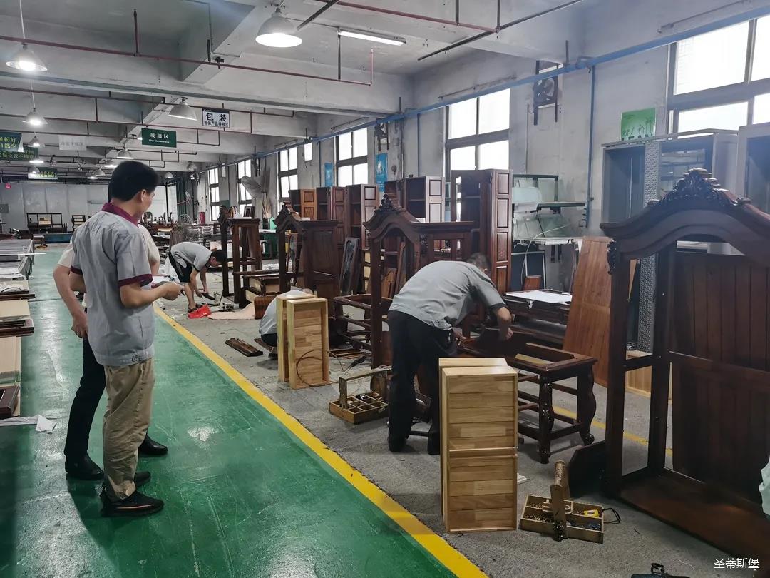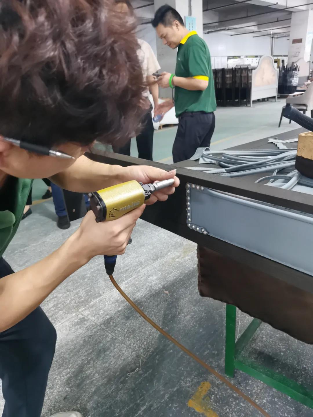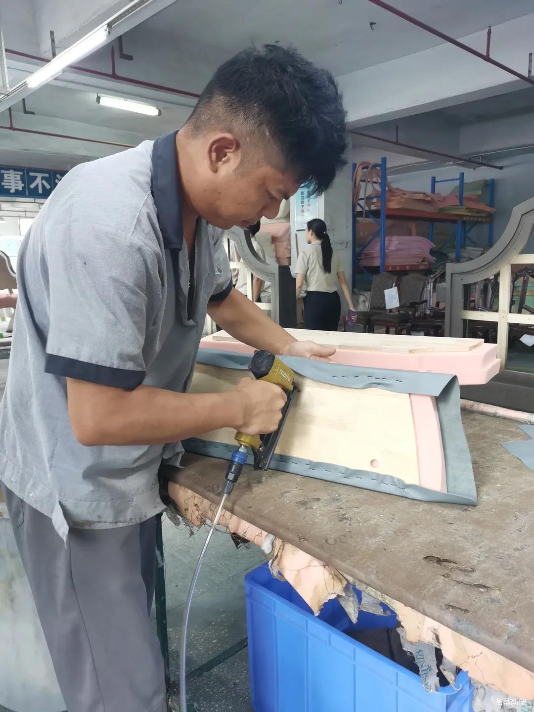 本屆技能競賽設置為工業(yè)組和商業(yè)組,共設競賽項目8項,其中,工業(yè)組競賽包含了打滾邊、打銅釘、自身產(chǎn)品組裝、成品組裝、柜體噴底色、修色、板材開(kāi)料等七大細項。商業(yè)組以組裝辦公臺、床頭柜為主。